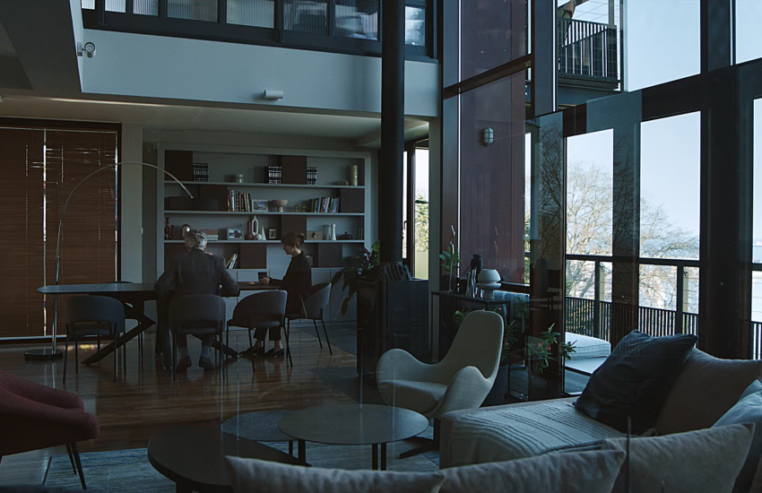 Tzw. master bedroom, czyli główna sypialnia z własną łazienką i garderobą, ukrytymi za identycznymi drzwiami, otwierającymi się w przeciwnych kierunkach. Jest to fajne symboliczne ukazanie rozbieżności zdań rodziców panny młodej, w scenie w której rozmawiając, jedno z nich wychodzi z garderoby, a drugie w tym czasie wchodzi do łazienki.